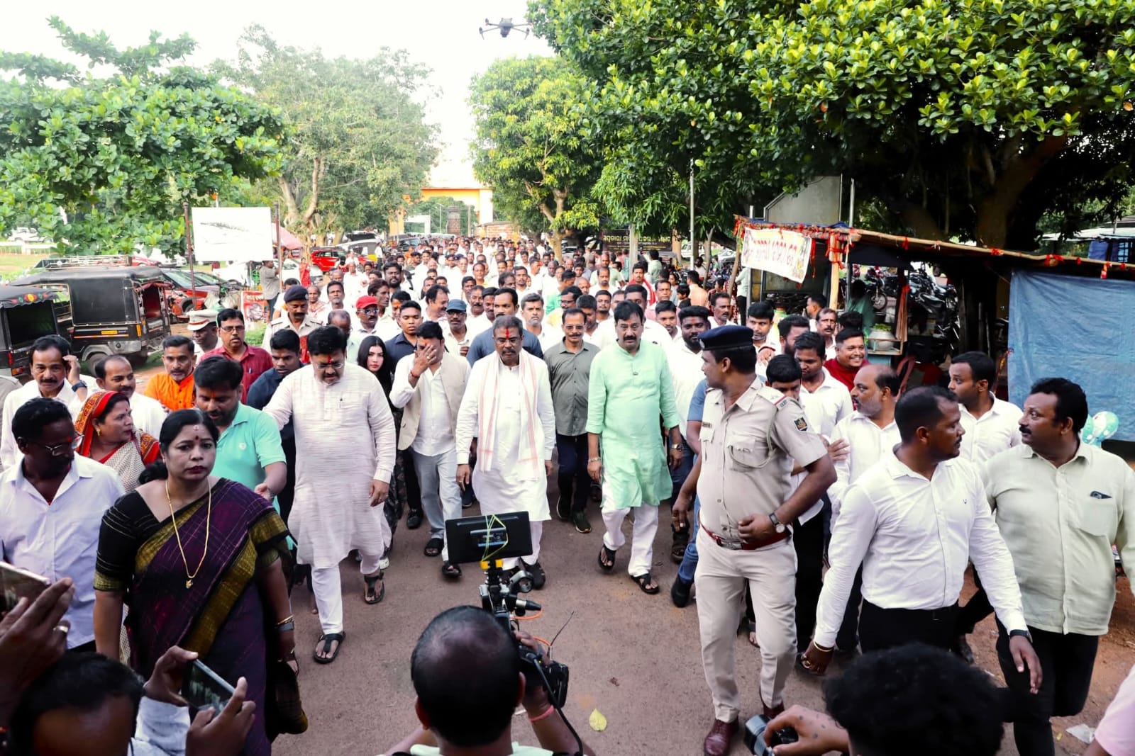 ‘ ନିରାକାରପୁର,୧୦/୮(ସମ୍ବାଦ ଓଡ଼ିଶା): ଖୋର୍ଦ୍ଧା ଜିଲ୍ଲା ଟାଙ୍ଗୀ ବ୍ଲକ ମୂଳିଝର ଗଡ଼ ରେ ମା’ ଉଗ୍ରତାରା ଙ୍କୁ ଦର୍ଶନ କରିଛନ୍ତି କେନ୍ଦ୍ର ଶିକ୍ଷା ମନ୍ତ୍ରୀ ଧର୍ମେନ୍ଦ୍ର ପ୍ରଧାନ। ମନ୍ତ୍ରୀ ଶ୍ରୀ ପ୍ରଧାନ ମନ୍ଦିର ରେ ପହଁଚି ମା ଉଗ୍ରତାରା ଙ୍କୁ ପୂଜାର୍ଚ୍ଚନା କରିଥିଲେ। ଓଡ଼ିଶାବାସୀଙ୍କ ସୁଖ ସମୃଦ୍ଧି କାମନା କରି ପୂଜାର୍ଚନା କରିବା ସହିତ ମନ୍ଦିରର ସେବାୟତ ମାନଙ୍କ ସହ ମାଙ୍କର ବିଭିନ୍ନ ନୀତି କାନ୍ତି ସମ୍ପର୍କ ରେ ଆଲୋଚନା କରିଥିଲେ କେନ୍ଦ୍ର ମନ୍ତ୍ରୀ ଧର୍ମେନ୍ଦ୍ର ପ୍ରଧାନ। ତାଙ୍କ ସହିତ ଆଇନମନ୍ତ୍ରୀ ପୃଥୀରାଜ ହରିଚନ୍ଦନ ଓ ଖୋର୍ଦ୍ଧା ବିଧାୟକ ପ୍ରଶାନ୍ତ କୁମାର ଜଗଦ୍ଦେବ ମଧ୍ୟ ମାଙ୍କୁ ଦର୍ଶନ କରି ଥିଲେ।। ମନ୍ତ୍ରୀ ଶ୍ରୀ ପ୍ରଧାନ ଓ ଶ୍ରୀ ହରି ଚନ୍ଦନ ମା’ ଉଗ୍ରତାରା ମନ୍ଦିରର ଉନ୍ନତି କରଣ ସମ୍ପର୍କରେ ମନ୍ଦିର ପରିଚାଳନା କମିଟିର ବରିଷ୍ଠ ସେବାୟତ ଓ ସ୍ଥାନୀୟ ନେତୃବୃନ୍ଦ ମାନଙ୍କ ସହିତ କଲେ ଆଲୋଚନା କରି ଥିଲେ। ମନ୍ତ୍ରୀଙ୍କ ଗ୍ରସ୍ଥକୁ ନେଇ ପୋଲିସ ପ୍ରଶାସନ ପକ୍ଷରୁ ସୁରକ୍ଷା କଡାକଡି କରାଯାଇଥିଲା।ମା ଙ୍କୁ ଦର୍ଶନ କରି ସାରିବା ପରେ କେନ୍ଦ୍ର ମନ୍ତ୍ରୀ ଭୁବନେଶ୍ୱର ଫେରି ଯାଇଥିଲେ।